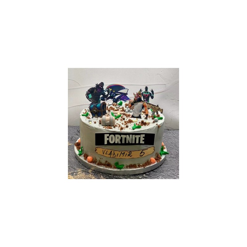 Setul contine 6 toppere personaje Fortnite si un topper sigla Fortnite. Realizate din carton, pentru tort cu dimensiuni intre 18-20cm.