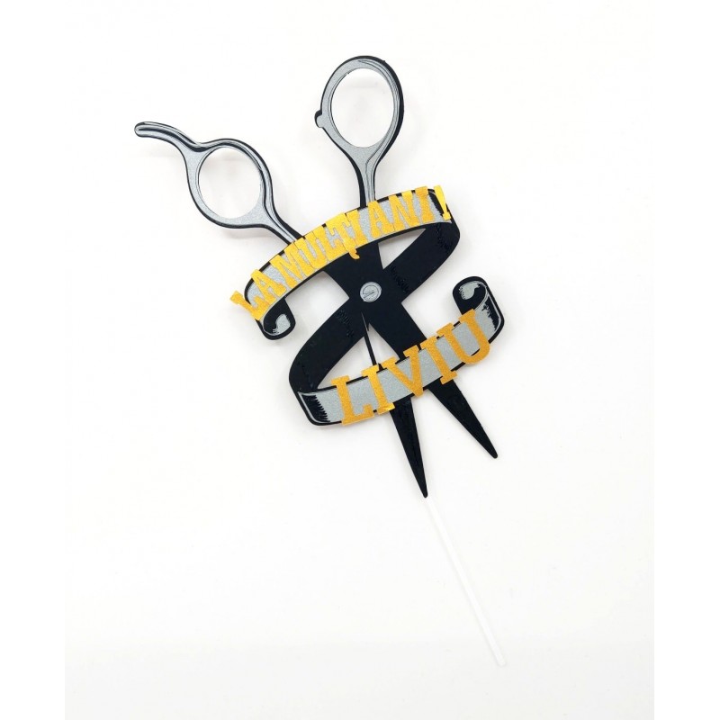 Topper din carton, realizat 3D, personalizat cu nume, pentru stilisti. Inaltime 12 cm.