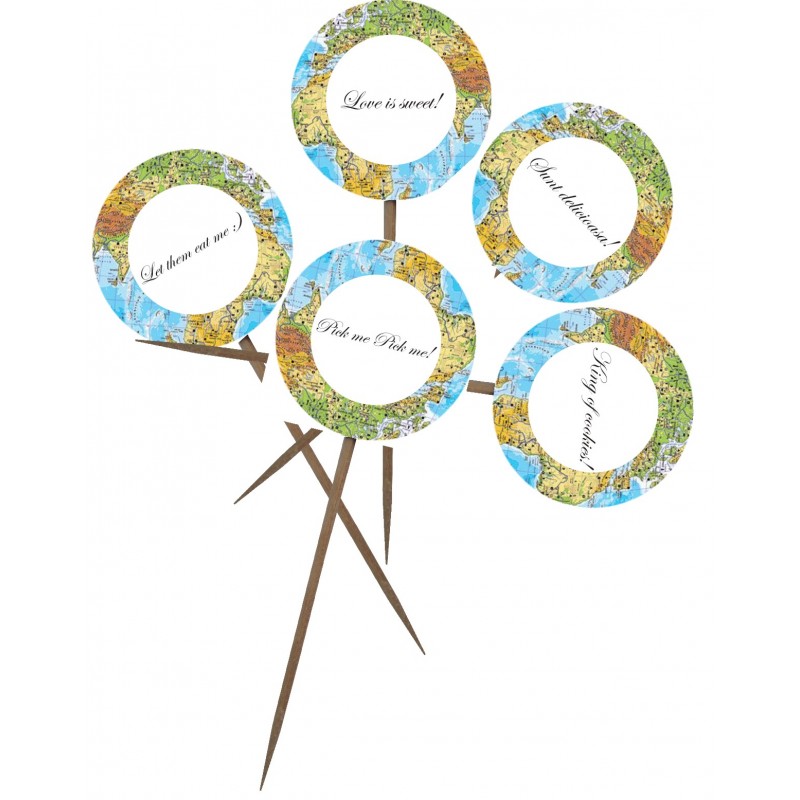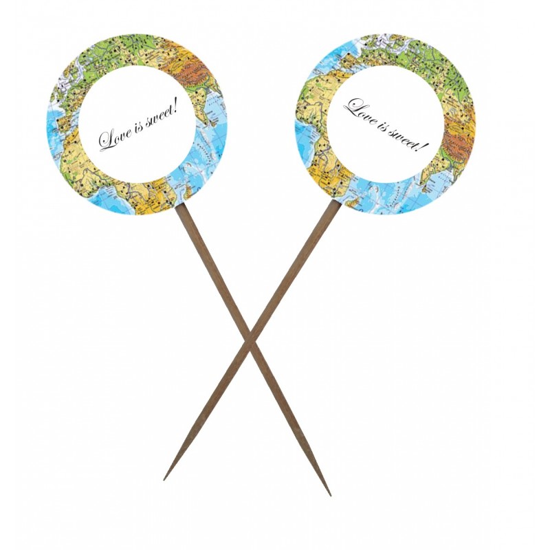 Toppere pentru Candybar rotunde, tema calatorie. Dimensiuni: diameru 3cm, inaltime 12cm. Diverse texte haioase.Setul contine 10 bucati. Negociabil la cantitati mari.